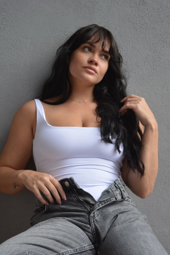 Lentiggini, cicatrice ginocchio sx, frangetta